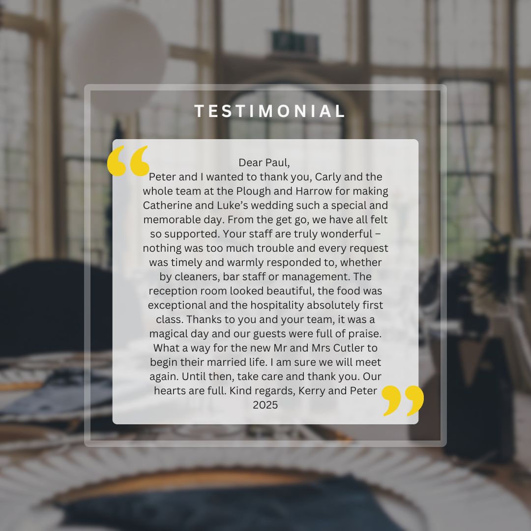 At The Plough and Harrow Hotel, weddings aren’t just events—they’re our passion.